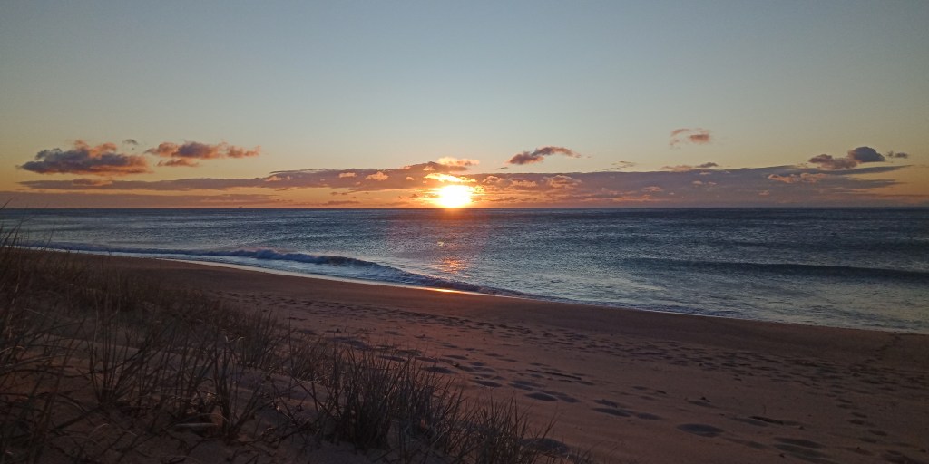 By the time we got to our chosen beach, about 45 minutes away, the sun had already started to peek above the horizon. We made our way to the sand and settled in to watch the show. Although the sunrise wasn’t the most spectacular one that I have seen, it was definitely a lovely experience, with the light breeze, the constant crashing of waves on the shore and the company of a good friend. After the sun had well and truly risen we started to tune into the growling of our stomachs so we sought out somewhere for breakfast before heading home. We arrived home by 10am with the rest of the day ahead of us.